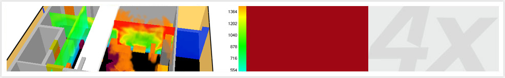 The fire modeling program used by the laboratory divides the structure into a multitude of separate small cubes. These numerical cubes are used to calculate such things as temperature, smoke generation and fire spread through a structure during the fire. These models have been highly useful in demonstrating temperatures and fire dynamics in fire investigation cases.